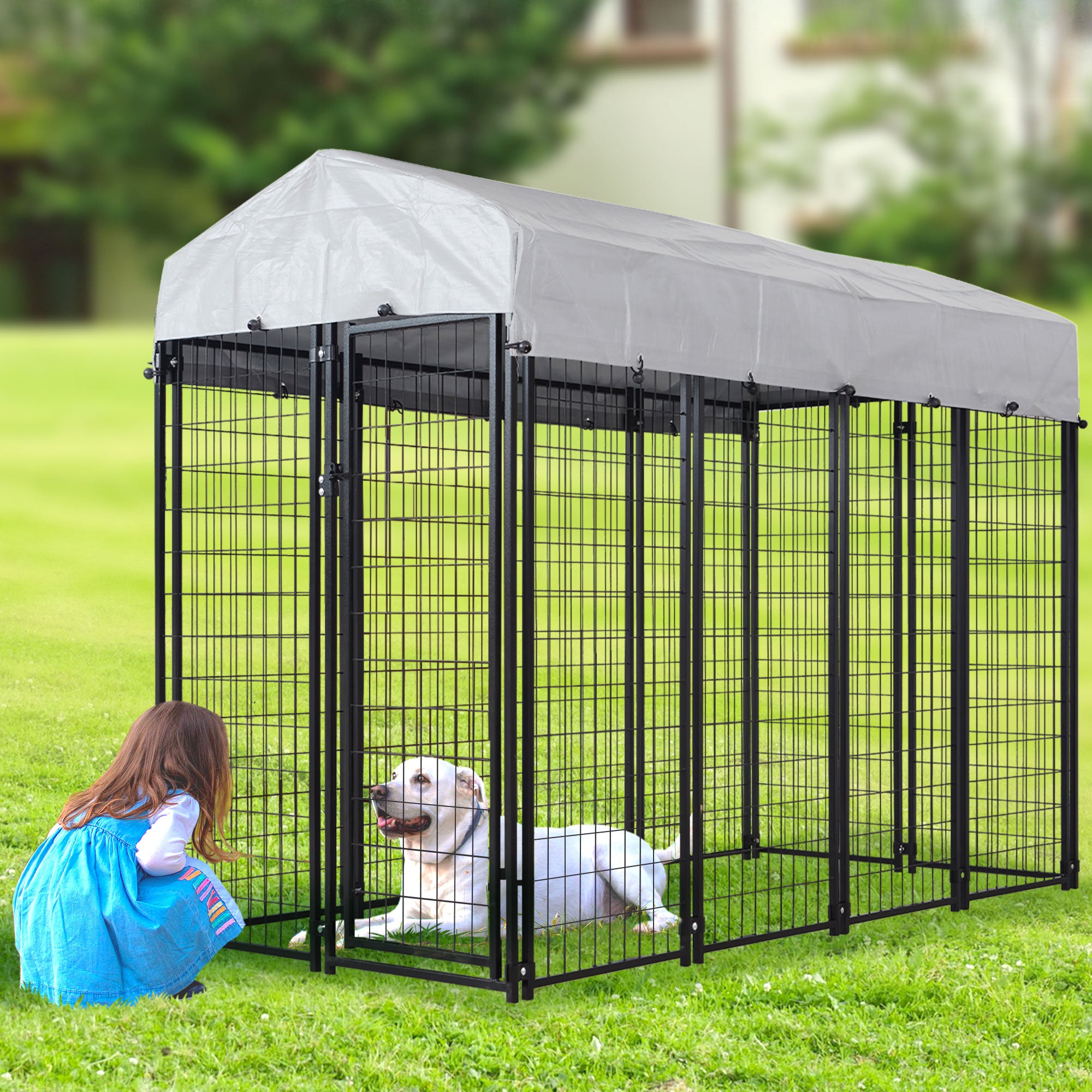 HITTITE Large Outdoor Dog Kennel, Outdoor Heavy Duty Dog Cage, Anti-Rust Dog Pens Dog Fence with Waterproof UV-Resistant Cover and Secure Lock 6.76'L x 6.76'W x 5.64'H