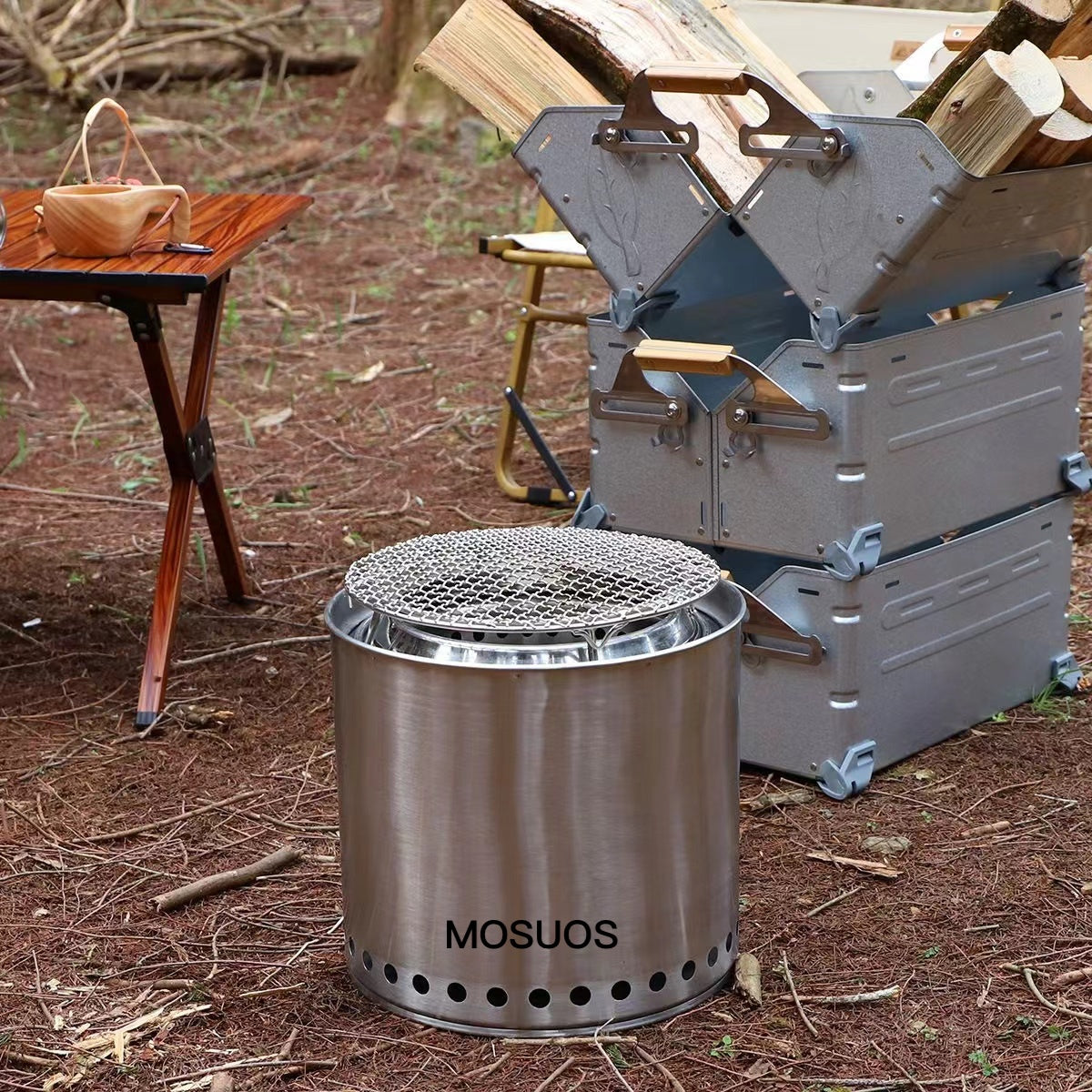 - A more cost-effective set: Mosu Pro set, the main body is made of 304 stainless steel, which is sturdy and durable. campfire stove cover + campfire stove bottom bracket, spend less money and enjoy more services.